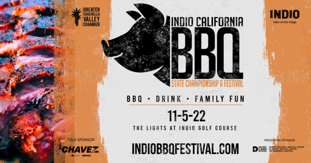 Join the City of Indio, Greater Coachella Valley Chamber of Commerce, and the Indio Chamber, for the 7th Annual Indio California BBQ State Championship and Festival. This KCBS sanctioned BBQ championship draws pit masters from across the nation to compete for a $10,000 purse. As part of the festivities, BBQ competitors will be offering their championship style delights for sale to the public. Come out and sample some of the best contest quality BBQ in the nation!